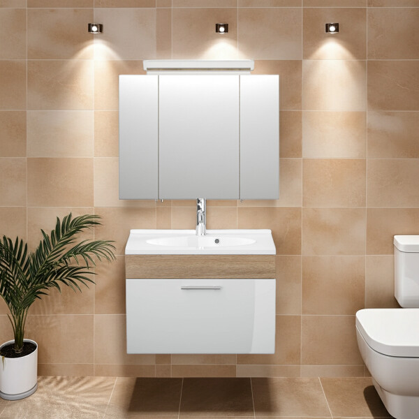 Badmöbel Salona Badset 2-teilig | Waschplatz 70cm + LED Spiegelschrank | eiche-weiss